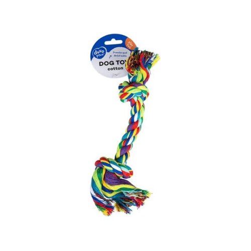Bavlněné přetahovadlo pro psy je spletené z pevných barevných provázků a má uzly pro lepší úchop při hře. Hodí se pro přetahování, aportování i kousání. Bavlněné provázky během hry přirozeně čistí chrup a přispívají tak ke zdraví zubů a dásní. Délka (cca): 26 cm Materiál: bavlna Upozornění: Není určeno dětem. Hračku pravidelně kontrolujte a v případě poškození přestaňte používat.