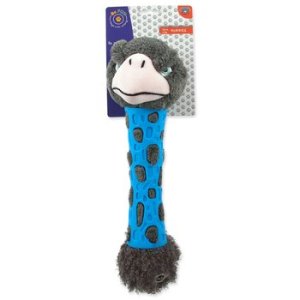 Tělo hračky je obalené odolným vzorovaným materiálem, který napomáhá masírovat dásně (ideální v době přezubování) a nabízí prostor pro vložení pamlsků.