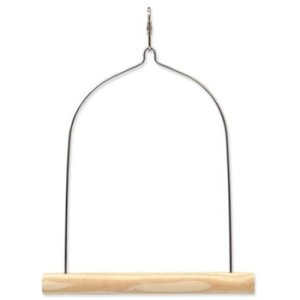 Dřevěná houpačka s kovovým závěsem k umístění do ptačích klecí.