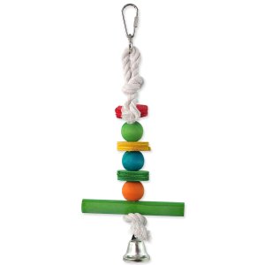 Hračka Bird Jewel závěsná dřevěná hrazda se zvonkem 30cm