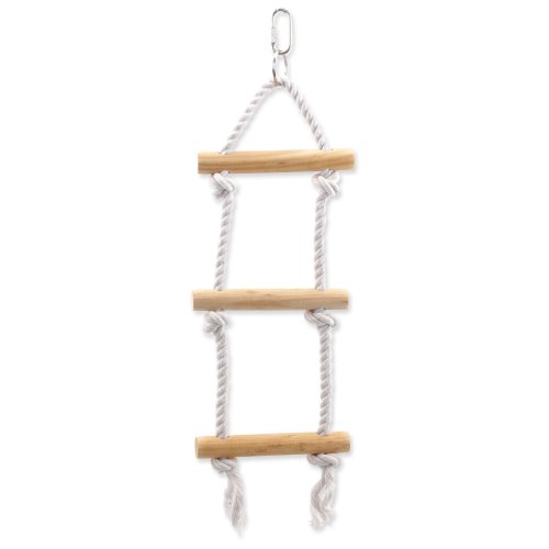 Provazový žebřík do ptačích klecí se 3 dřevěnými příčkami.