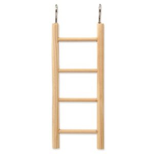 Žebřík s kovovým úchytem a 4 příčkami k zavěšení do klece.