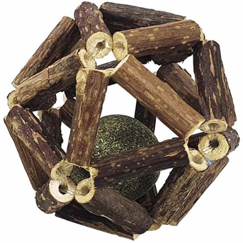Hračka obsahuje dřívka matatabi a catnipovou kuličku. Kočky tyčinky milují, mazlí se s nimi, olizují je a také koušou a tím zlepšují dentální hygienu. Rostlina je svými účinky podobná šantě kočičí nebo kozlíku, ale má odlišnou vůni. Hračka též obsahuje catnip – šantu kočičí. Rozměry: 11 cm