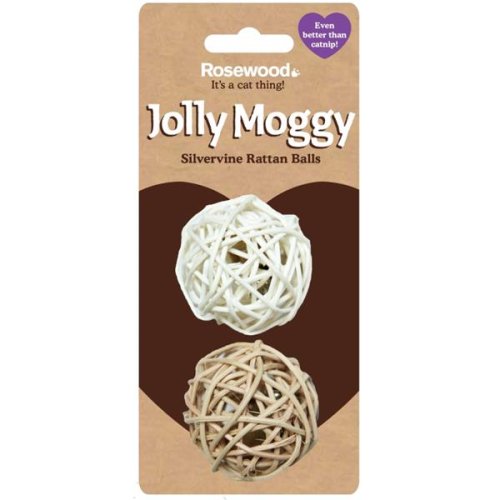 Míčky Jolly Moggy Silvervine Balls jsou vyrobené z ratanu a naplněné aktinidií stříbrnou, bylinou, která u koček vyvolává podobné reakce jako šanta kočičí nebo kozlík lékařský. Pro větší vzrušení ze hry je uvnitř každého míčku také rolnička.