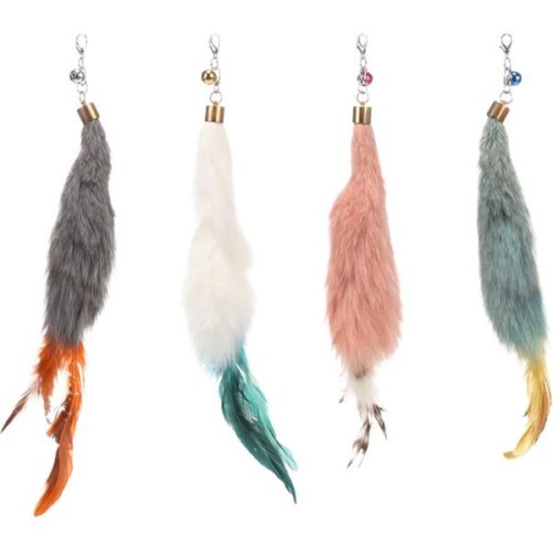 Rozměry (cca): 29 × 8 × 2,5 cm Materiál: králičí srst, peří, kov Barva: šedá, bílá se zelenou, růžová nebo petrolejová – dodáváme dle skladové zásoby. Máte-li zájem o konkrétní variantu, napište ji do poznámky v objednávce. Upozornění: Hračka je určena pro použití v interiéru a není určena dětem. K použití pouze pod dohledem. Hračku pravidelně kontrolujte a v případě poškození přestaňte používat.