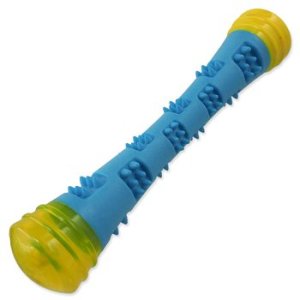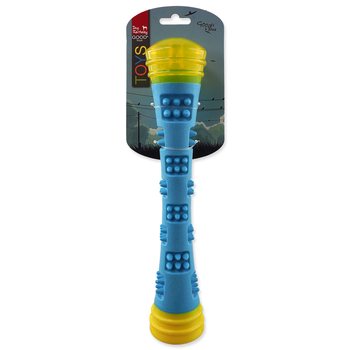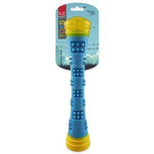 Barevná pěnová hračka. Hůlka svítí a po skousnutí píská.