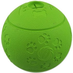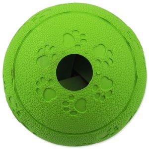 Interaktivní hračka pro psy. Do otvoru lze vložit pamlsky, které se při pohybu s míčkem vysypávají ven a psa to motivuje k další hře.