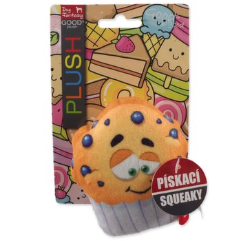 Roztomilá plyšová hračka ve tvaru muffinu. Při stlačení hračka píská.