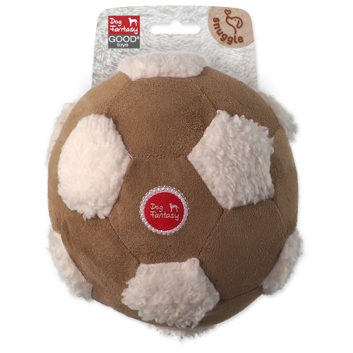 Plyšová hračka ve tvaru míče s pískátkem uvnitř.