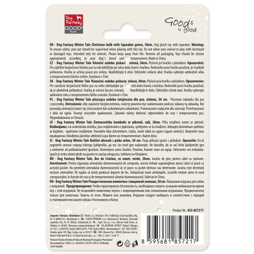 Hračka Dog Fantasy Winter Tale ozdoba vánoční pískací, zelená 30cm