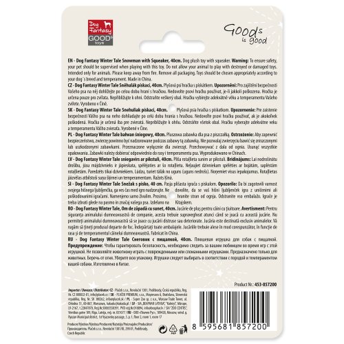 Hračka Dog Fantasy Winter Tale sněhulák plyš pískací 40cm