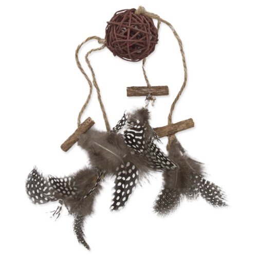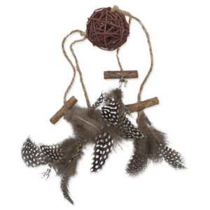 • Ratan, dřevo a peří jsou šetrné k tlapkám i zubům a dobře se drží v tlamičce.