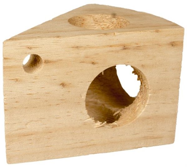 Dřevěná hračka z neupravovaného přírodního dřeva pro hlodání, zábavu a předcházení nudy králíků a hlodavců. Pro drobné hlodavce poslouží i jako prolézačka a úkryt. Dřevěné hračky podporují přirozený hlodavý instinkt. Hlodání je důležité pro dostatečné obrušování stále rostoucích hlodavých zubů a udržení jejich růstu pod kontrolou. Rozměry: délka 11 cm, šířka 8 cm, výška 7,3 cm, průměr otvorů 4 cm a 3,5 cm