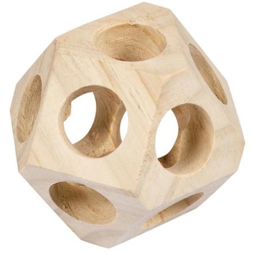 Dřevěná hračka z neupravovaného přírodního dřeva pro zábavu a předcházení nudy králíků a hlodavců. Pro drobné hlodavce poslouží i jako prolézačka a úkryt. Kouli můžete použít i jako krmítko a naplnit ji senem, bylinkami, zeleninou nebo dalšími zdravými pochoutkami. Dřevěné hračky podporují přirozený hlodavý instinkt. Hlodání je důležité pro dostatečné obrušování stále rostoucích hlodavých zubů a udržení jejich růstu pod kontrolou. Rozměry: průměr koule 10cm, průměr otvorů 3,2cm.