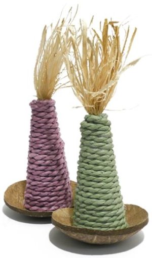 Hračka k zahnání nudy pro drobné savce podporující hlodání. Kužel na kokosovém podnosu. Vyrobené z přírodních materiálů. 1 kužel, průměr podnosu 9cm, výška kuželu bez střapce 11cm.