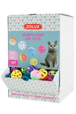 URČENO PRO PET SHOPY. Display se zábavnými míčky pro kočky, obsahuje celkem 204 míčků v 6 modelech.