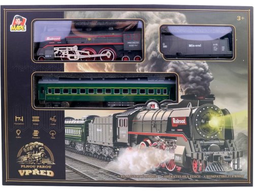 Vlaková souprava s parní lokomotivou na baterii přináší dětem jedinečný zážitek díky světelným a zvukovým efektům. Efekt páry, která vychází z komína lokomotivy, dodává hře realistický nádech a zabaví malé strojvedoucí na dlouhé hodiny. Montáž kolejnic je opravdu snadná. Hračka je vhodná pro děti od 3 let.