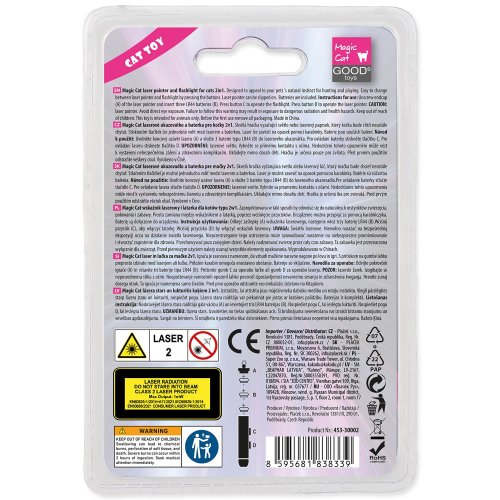 Skvělá hračka vyzařující světlo nebo laserový paprsek, který kočka bude chtít neustále chytat. Stisknutím tlačítek lze jednoduše volit mezi laserem a baterkou. Laser lze zavěsit na opasek pomocí karabinky. Baterie jsou součástí balení. ?