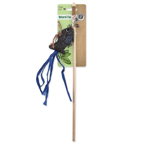 Hračka Magic Cat Natural Fun šidítko ryba s rolničkou a šantou kočičí šedá 40cm