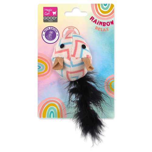 Lákavá hračka v podobě myši s pírkem a šantou kočičí.