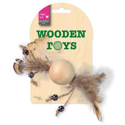 Dřevěná hračka pro kočky s přírodními pírky. Hračka podporuje přirozený instinkt pro hru a pohyb. ?