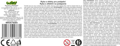 Hračka na potápění, ryba Vydává světelné efekty. Rozměry hračky 18x8x22 cm. Baterie 3xAG3, součástí balení. 3 varianty - červená, modrá, žlutá.