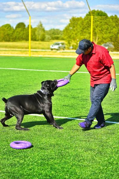 Puller MAXI - extra silný kruh. Hračka vhodná pro psy plemen typu bull a jiné psy se silnými čelistmi, pro velmi hrubé zacházení nebo přetahování ve více psech. Puller MAXI se vyznačuje větší tloušťkou a vnitřní rýhou pro pohodlné držení. I při své výborné odolnosti je velmi lehký a plovoucí, takže ho můžete využít i ke hře ve vodě. Navíc jej můžete zavěsit na provaze do výšky, nechat psa vyskočit a držet hračku ve visu. Ideální pro trénink bull sportů. Posiluje skus, sílu čelistí a krční svalstvo. PULLER je vyroben z unikátního materiálu, který nepoškozuje zuby a dásně vašeho psa. Materiál umožní psovi lehce se zakousnout, aniž by byl narušen tvar a vlastnosti hračky. Viditelné stopy po zubech patří k běžným vlastnostem hračky a nijak nesnižují její odolnost či trvanlivost. Hračka po čase dokonce zcela ztratí svůj hladký povrch, což je zcela přirozený projev materiálu a patří k užívání PULLERu. Výhody PULLERU: