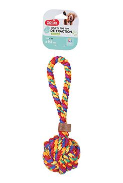 Duhová provazová hračka pro psy, vhodná pro přetahování.Vyrobené z provazu utkaného podobně jako tričkoTričkovina z polyesteru představuje pro psy měkký materiál ke žvýkáníŠtítek s logem z eko kůže Žvýkáním se snižuje množství zubního plakuPři hraní se posiluje pouto se zvířetem Čtyři modely: chobotnice, tenisák, čtyři uzly a míčekČtyři velikosti: 38 cm, 60 cm, 78 cm, 9,5 cm