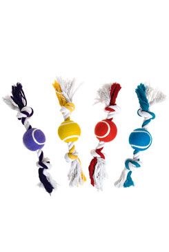 Hračka pro psy - tenisový míček na provazu. Tento tenisový míček s integrovanými bavlněnými uzly je ideální pro házení, aportování a škubání. Design tohoto tenisového míčku umožňuje každému psovi dlouhou a bezpečnou hru.