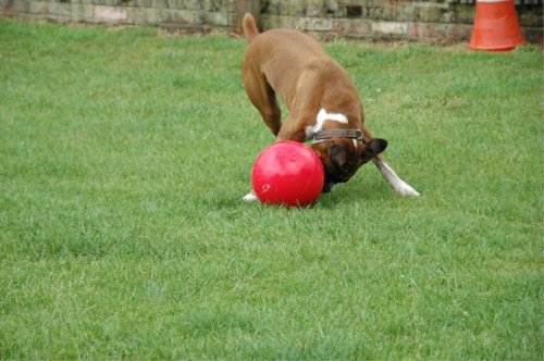 Plastový míč Boomer Ball je odolná hračka určena pro hry nezaměstnaných, ale aktivních psů. Vhodný pro lovecké psy. Důležitý je výběr velikosti - rozměr míče musí být takový, aby jej pes nemohl uchopit do tlamy a zmáčknout. To psy povzbuzuje k další hře. Je nestlačitelný a tedy teoreticky nezničitelný. Boomer Ball se také používá v zoo pro obohacení okolního prostředí slonů, prasat, tygrů, ledních medvědů nebo jiných zvídavých a aktivních zvířat. Průměr: 20 cm