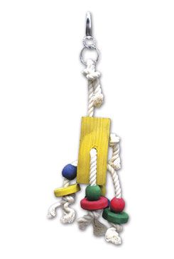 Hračka do klecí a voliér vyrobená z pevného a odolného materiálu proti okusu.