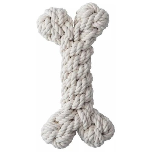Bavlněné přetahovadlo pro psy ve tvaru kosti je spletené z pevných přírodních provázků. Hodí se pro přetahování, aportování i kousání. Bavlněné provázky během hry přirozeně čistí chrup a přispívají tak ke zdraví zubů a dásní. Délka (cca): 27 cm Velikost: L Materiál: bavlna Barva: bílá Upozornění: Hračka není určena dětem. K použití pouze pod dohledem. Hračku pravidelně kontrolujte a v případě poškození přestaňte používat.