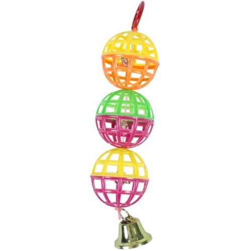 Ptáci mají rádi barevné hračky. Tyto tři plastové míčky se zvonkem obohatí prostředí v kleci a podnítí ptáky k aktivitě. Rozměry: délka 15cm, průměr míčků 4cm