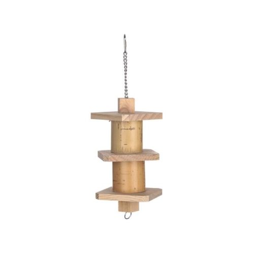 Závěsná hračka z borovicového dřeva a bambusu je vhodná pro různé druhy papoušků. Do otvorů ve dřevě lze ukrýt pamlsky a podpořit tak přirozené hledání potravy, ozobávání a zkoumání. Hračka stimuluje mentální i fyzickou aktivitu a pomáhá zahnat nudu. Díky nerezovému řetízku s kovovou karabinkou ji lze snadno zavěsit do klece nebo voliéry. Vyrobena z odolných a bezpečných materiálů. Rozměry (cca): 40 × 11,4 cm Materiál: borovicové dřevo, bambus, kov