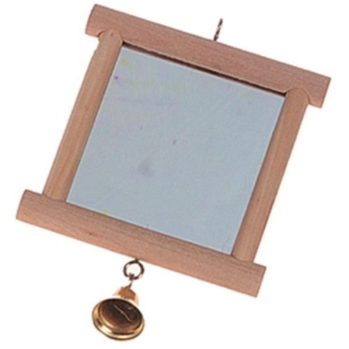Závěsná dřevěná hračka pro papoušky – zrcátko. Hračku uvítají především papoušci, kteří jsou v kleci sami. Hračka je vhodná pro všechny druhy papoušků. Snadné zavěšení do klece či voliéry. Rozměry: 13 × 10 cm