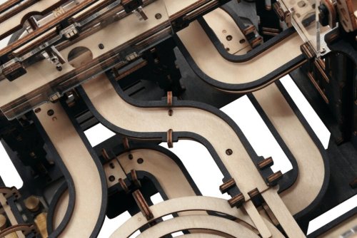 Královna nabídky kuličkových drah Robotime nabízí mimořádné množství překážek, z nichž některé využívají efektní čirý akrylát, abyste si mohli skotačení kuliček podrobně prohlížet. Skládačky kuličkových drah Robotime nabízejí jinde nevídané podrobnosti a variabilitu. Každá se může pyšnit originálními funkčními detaily a roztodivnými překážkami, které často nápaditě změní dráhu kuličky, a přinášejí tak výjimečnou zábavu. Mechanika je poháněna ručním pohonem, otáčením klikou, kterým jsou také vynášeny a na cestu pravidelně spouštěny kuličky. Skládačka je dodávána v nesloženém stavu, balena v krabici.