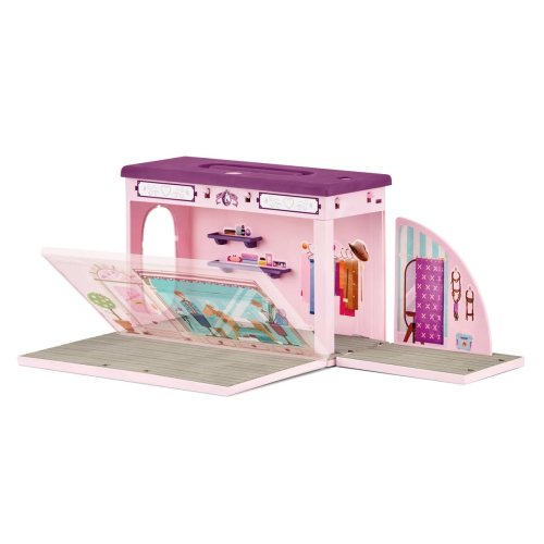 Sháníte vhodný dárek pro svého potomka? Mobilní butik pro koně od značky Schleich mu určitě udělá radost. V přenosném kufříku najde pohyblivé postavičky pana Mitchella a starostlivé Kim, figurku koně a dokonale vybavený salon. V něm může koně hřebelcovat, zaplétat mu copy a krášlit ho pomocí různých doplňků. Díky široké škále příslušenství je hraní s touto sadou obrovská zábava.