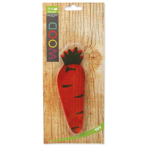 Dřevěná mrkev ke hlodání slouží jako hračka k okusování a broušení zubů a drápků.