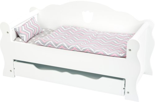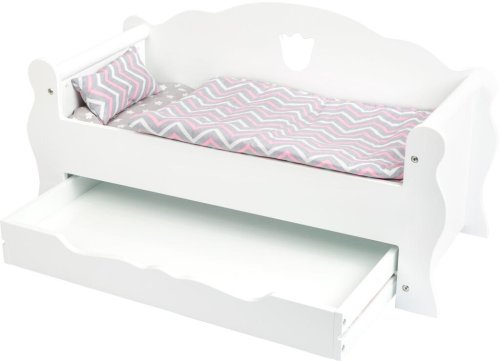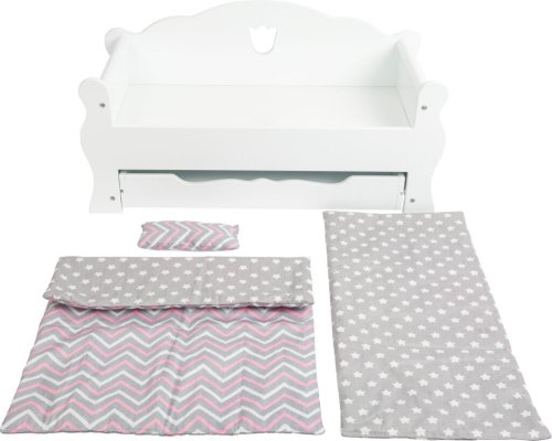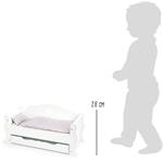 I panenka si zaslouží kvalitní odpočinek po celodenním hraní. Váš potomek ji uloží do postýlky od značky Small Foot a přikryje ji dekou. Přikrývka je oboustranná, takže záleží na vašem dítěti, jaký vzor se mu líbí více. Postýlka je vybavená úložným prostorem, do kterého může vaše ratolest uschovat deku a polštářek. Nebo výsuvnou část využije jako další místo na spaní pro své panenky. Postýlka se vyrábí ze dřeva a doplní vybavení každého dětského pokoje. Vejde se do ní jakákoliv panenka s výškou maximálně do 45 cm.