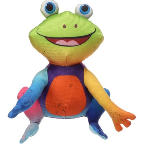 Pestrobarevná hračka pro psy ve tvaru žáby je vyrobená z měkké tkaniny a plyše. Pro ještě větší potěšení ze hry píská a šustí. Rozměry (cca): 20 × 16,5 × 24 cm Materiál: polyester (plyš, textil)