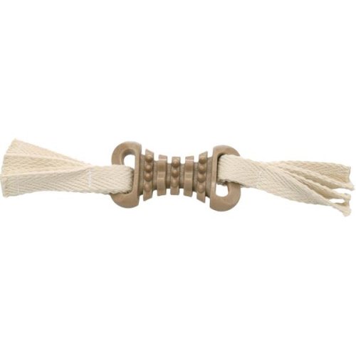Hračka pro psy ve tvaru kosti je vyrobená z termoplastické gumy (TPR) s bambusovým vláknem. Při kousání masíruje dásně a pomáhá omezovat tvorbu zubního plaku, čímž přispívá k přirozené péči o chrup. Stuhy připevněné na obou koncích mohou sloužit ke kousání nebo přetahování. Drážky v hračce lze naplnit jedlou pastou a zvýšit tak motivaci ke hře. Rozměry (cca): 28 × 5,9 × 3 cm Materiál: TPR (termoplastická guma), bambus Barva: hnědá, béžová Upozornění: Hračka není určena dětem. K použití pouze pod dohledem. Hračku pravidelně kontrolujte a v případě poškození přestaňte používat.