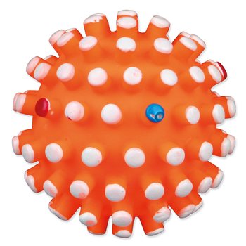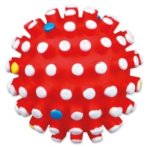 Hračka míček s bodlinami se zvukem pro psy. Tato hračka zabaví psa na dlouhou dobu. Míček je vyrobený z vinylu. Zvuk hračky bude psa neustále lákat ke hře. Bodlinky masírují dásně psa.