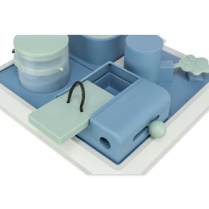 Schovejte granule nebo pamlsek do hračky a nechte psa si užít zábavu s hledáním. Pes může použít tlapu nebo čumák k posouvání plastových čtverců, jejich otevření nebo nadzvednutí částí hračky a získat tak pamlsek.