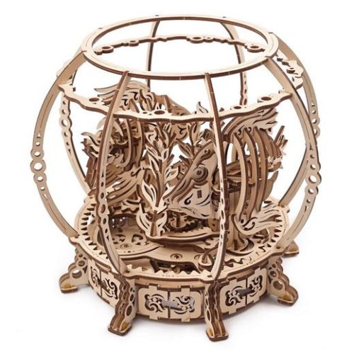 Pokud jste vždy toužili po akvárku nebo jiné podobné ozdobě obýváku či dětského pokoje, budete s touto skládačkou spokojeni. Po sestavení totiž získáte mechanické akvárium s dřevěnými rybičkami. Natáhněte mechanismus a sledujte, jak se dvojice ryb rozpohybuje kolem krásné vyřezávané rostliny uprostřed. Potěší vás i různé detaily jako například malý mořský koník schovaný ve vodní rostlině.
