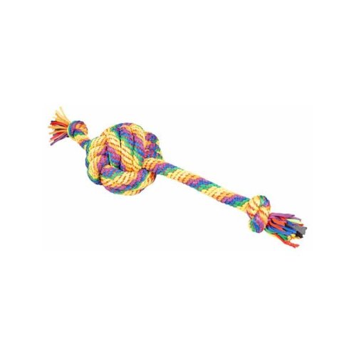 Odolné a barevné přetahovadlo pro psy se smotaným míčkem uprostřed je spletené z pružných pruhů látky připomínající legínovinu. Hračka je elastická, což zvyšuje zábavu při přetahování a aportování. Uzly ve hře poskytují lepší úchop a pevnost a kvalitní materiál zajišťuje dlouhou životnost hračky. Rozměry (cca): Ø míčku 14 cm celková délka 70 cm Materiál: bavlna, polyester Barva: oranžová, žlutá, červená, zelená, fialová, modrá Upozornění: Není určeno dětem. Hračku pravidelně kontrolujte a v případě poškození přestaňte používat.