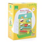 Barevný kaskádový domek značky Vilac je krásná dřevěná hračka, s kterou si děti užijí mnoho zábavy. Domek má 3 rampy na obou stranách a tak se dřevěné míčky pohybují shora dolů, ze strany na stranu. A když míček dojede do cíle, zazvoní kovový zvoneček. Poutavá hračka podporující logické myšlení.