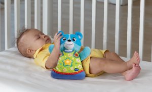 VTech Usínáček Medvídek pomůže děťátku relaxovat i usnout. Tento jemný a roztomilý medvídek hraje uklidňující melodie od nejuznávanějších světových "klasiků" jako jsou Debussy, Beethoven, Čajkovsky, Brahms, Mozart, Liszt, Bach a mnoho dalších. Kratičké ukolébavky pro ty nejmenší nazpívala Petra Černocká. Medvídek také mluví. Chce například obejmout, dává pusinku a děťátku poví, že ho má rád. Příjemnou „spací atmosféru" navodí i zvuky ptáků, tekoucí vody nebo mořských vln. Hvězdička na bříšku je jemná na dotyk, funguje jako vypínač a navíc se pomaloučku střídavě rozsvěcí a zhasíná. Medvídkovo měkké zářící bříško nikde netlačí a je příjemné na dotyk. Po odpojení a vyjmutí krabičky s elektronikou (jde to velice snadno) lze Usínáčka i vyprat. VTech Usínáček Medvídek je určen pro děti od narození. Funguje na 3 AA baterie, které jsou součástí balení. SEZNAM MELODIÍ: Beautiful Dreamer, Clair de Lune (Debussy), All Through The Night, Au Claire de la Lune, Moonlight Sonata (Beethoven), Sleeping Beauty Waltz (Tchaikovsky), To a Wild Rose (McDowell), Canon in D (Pachelbel), Lavender's Blue, Irish Lullaby, Spring Song, . Fur Elise, Go Tell Aunt Rody, Cradle Song (Brahms), The Riddle Song, Oh Dear! What, Can the Matter Be?, Sweet and Low, Moonlight Bay, Dream of Love (Liszt), Minuet in G (Bach), Where Has My Little Dog Gone?, Morning - Peer Gynt Suite (Grieg), Farmer in the Dell, Shenandoah, Rock-a-bye Baby, Greensleeves, Are You Sleeping?, Row, Row, Row Your Boat, Jesu, Joy of Man's Desiring (Bach), Twinkle, Twinkle Little Star, Winter - The Four Seasons (Vivaldi), Minuet (Mozart)