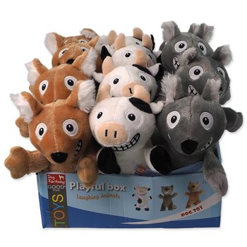 Hračky Dog Fantasy Playful Box Laughing zvířat pískací a šustící ocas mix 29cm 18ks