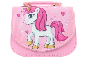 Růžová kabelka s motivem jednorožce.
