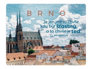 Magnet na lednici s motivem Brna a inspirujícím aforismem Sri Chinmoye.